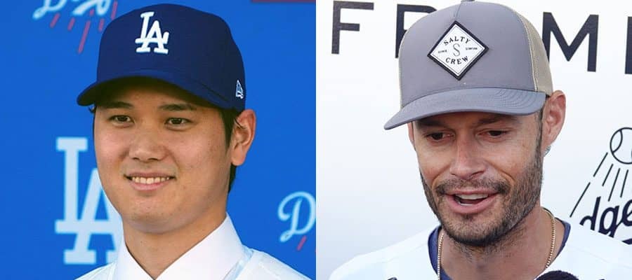 ドジャース・大谷翔平(左)とジョー・ケリー【写真:ロイター、小谷真弥】