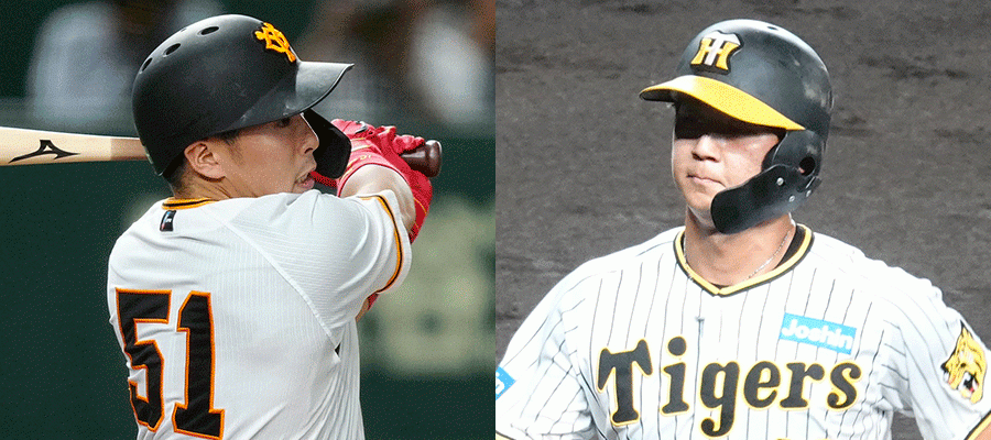 巨人・浅野翔吾(左)と阪神・井坪陽生【写真:矢口亨、橋本健吾】