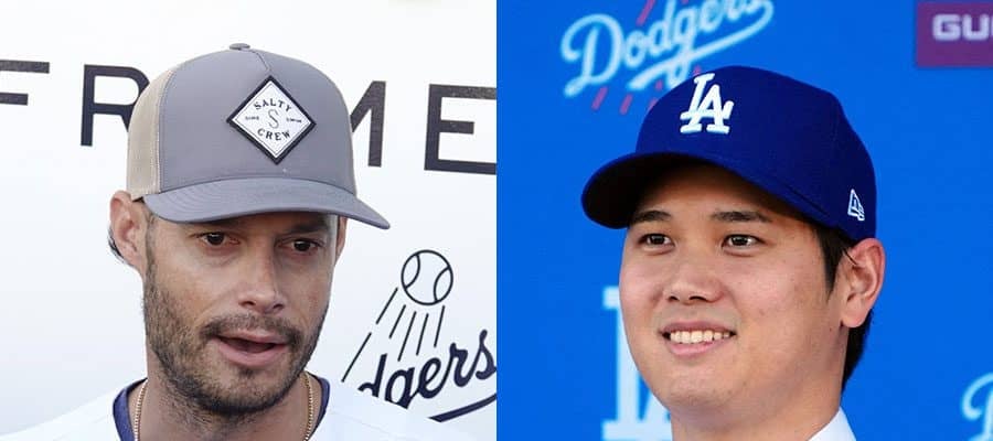ドジャース・大谷翔平(左)とジョー・ケリー【写真:ロイター、小谷真弥】