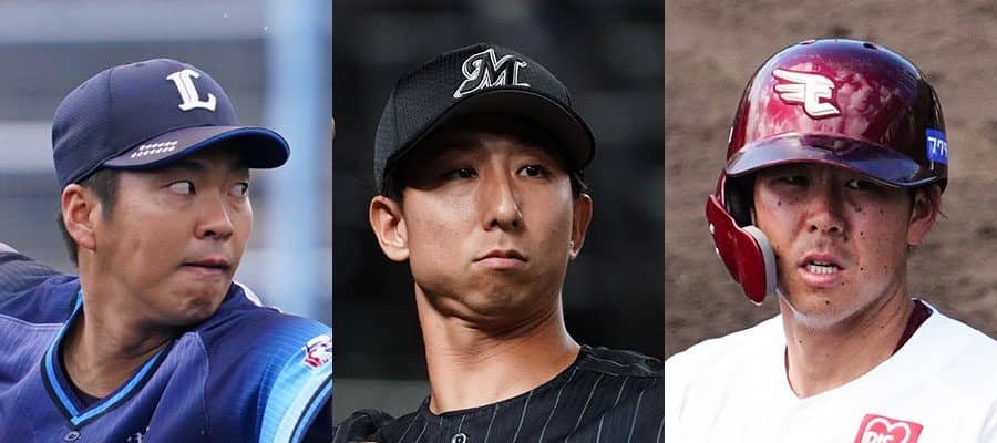 元西武・十亀剣、元ロッテ・福田秀平、楽天・鈴木大地(左から)【写真:荒川祐史】