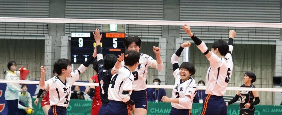 1回戦の東九州龍谷(大分)戦で6得点を挙げたブロックがこの日もさえ、2年ぶりの頂点に向けて視界は良好。守備の中心として躍動した岡崎杏(3年)は「守備からつなぐ意識でできた。去年は(新型コロナの検査で陽性判定者が出たことで)出られない悔しさがあったので、コートでプレーできることを全身で楽しみたい」と汗をぬぐった。