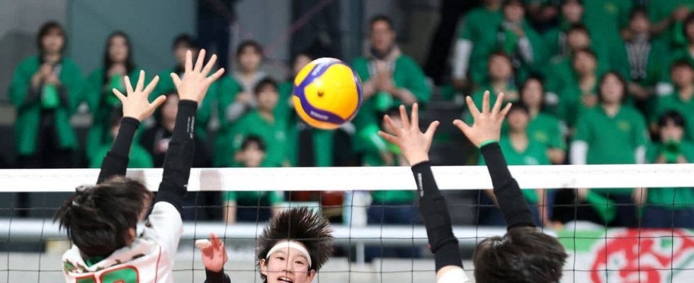 5日の春高バレー女子2回戦で習志野が鹿児島女とのフルセットの接戦を制し、3回戦に進出した。38年ぶりの出場をブラスバンド…