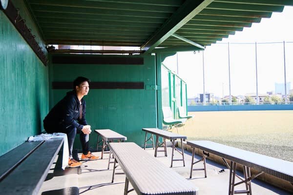 ENEOSとどろきグランド三塁側ベンチの定位置からグラウンドを眺める 撮影/村上庄吾