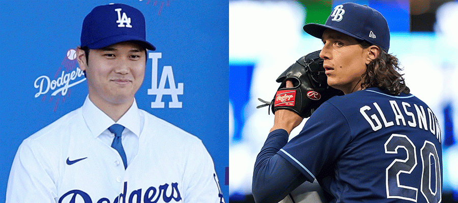ドジャース・大谷翔平(左)とタイラー・グラスノー(写真はレイズ在籍時)【写真:ロイター、Getty Images】