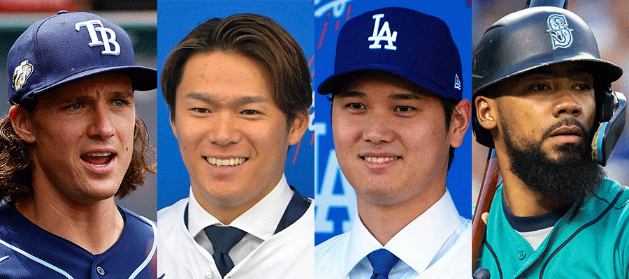 ドジャースがオフに獲得したタイラー・グラスノー、山本由伸、大谷翔平、テオスカー・ヘルナンデス(左から)【写真:Getty Images、ロイター】
