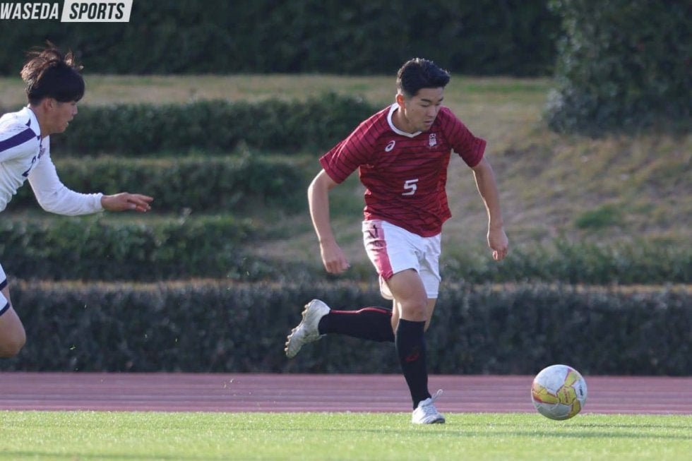 佐久間 伊勢君(伊勢航、社3=ガンバ大阪ユース)とかにはボランチはどうかなと聞いていますし、その上の平松君(平松柚佑主将、社4=山梨学院)とかともよく話します。平松君は4年になって、逆にボランチからセンターバックにコンバートされた人なので、ポジションが定まらないこととか、ボランチとセンターバックでの違いとかはいろいろ聞きます。でも、試合に出れたりチームに貢献できればいいなと思います。ボランチもセンターバックもやることは違いますけど、どっちで出るからフラストレーションがたまるということはあんまりないんで、そこは(これからも)いろいろ聞いていきたいですね。
