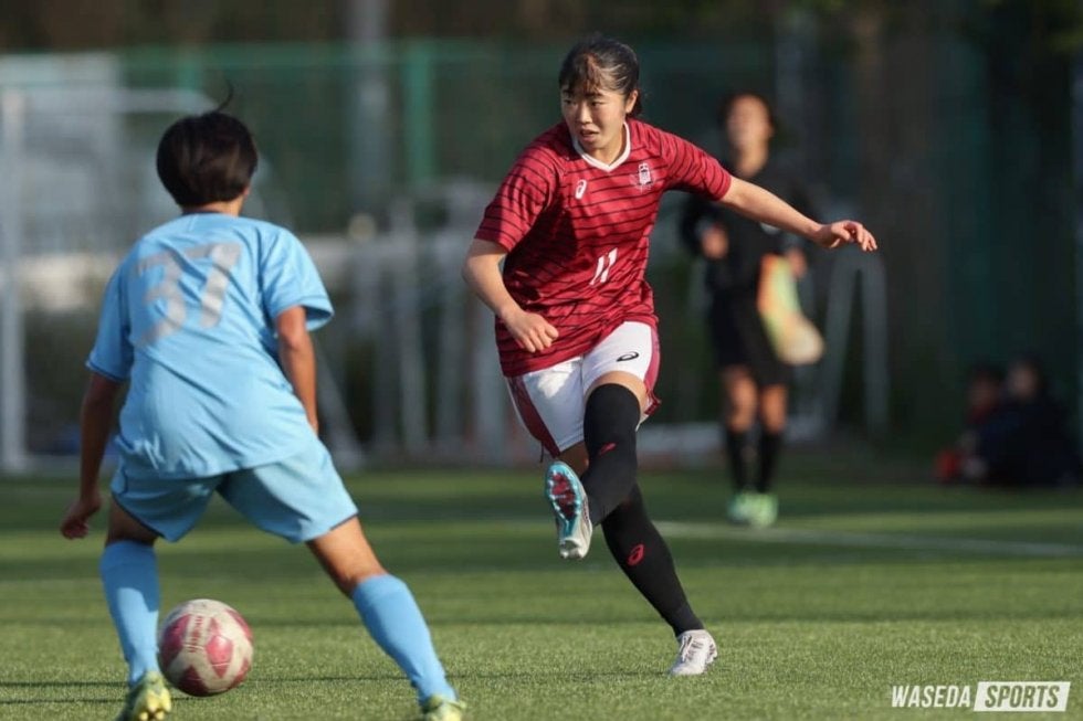 ア式蹴球部女子の関東大学女子リーグ(関カレ)が開幕した。前週の関東女子リーグ(関東リーグ)第1節と同じメンバーで臨んだ今節は、前半は強度の高いプレスに苦しみ予想以上の拮抗(きっこう)した戦いに。後半に入ると流れを掌握し74分、コーナーキックこぼれたところをMF笠原綺乃(スポ4=横須賀シーガルズJOY)が枠内シュートを放つが、相手DFに防がれる。最後までお互いに1点が遠く、関カレ開幕戦をスコアレスドローで終えた。