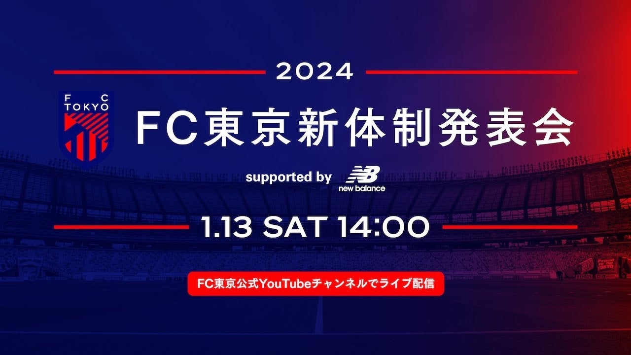 「2024FC東京新体制発表会 supported by New Balance」と題し、「ファン・サポーターのみなさまに向けて、新チーム体制や新加入選手の紹介、監督や選手たちの登壇、新ユニフォームの発表など、ファン・サポーター必見のコンテンツを盛りだくさんでお送りいたします」と綴った。