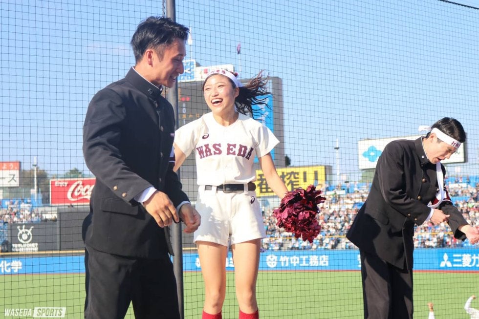 試合後には早慶戦で勝利したときのみに演奏される『早稲田の栄光』が流れ、早稲田の勝利を祝福。更には小野泰助副将兼リーダー練習責任者(文4=群馬・沼田)により、『伝統の勝利の拍手』が披露された。『伝統の勝利の拍手』は早慶戦にて、早稲田が勝利したときのみ行われる伝統技であり、海のうねりを思わせる小刻みな乱打から、3拍子、4拍子、1拍子、2拍子を挟んで、最後に勝鬨(かちどき)の声を上げる。早稲田の勝利を祝福し、早稲田の優勝を信じて、セレモニーが盛大に執り行われた。