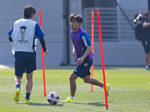 日本代表に合流、トレーニング中の久保建英photo by MB Media/AFLO