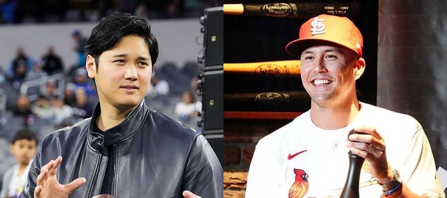 ドジャース・大谷翔平(左)とカージナルスのラーズ・ヌートバー【写真:ロイター、竹村岳】