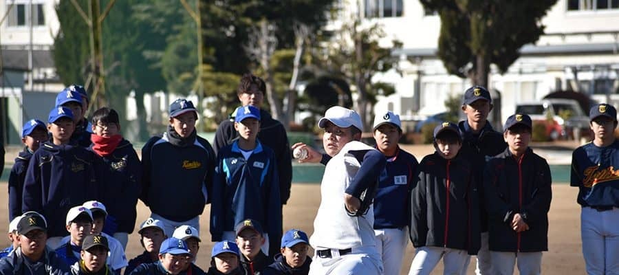 埼玉・上尾高で開催された市内中学生対象の野球教室の様子【写真:高橋幸司】