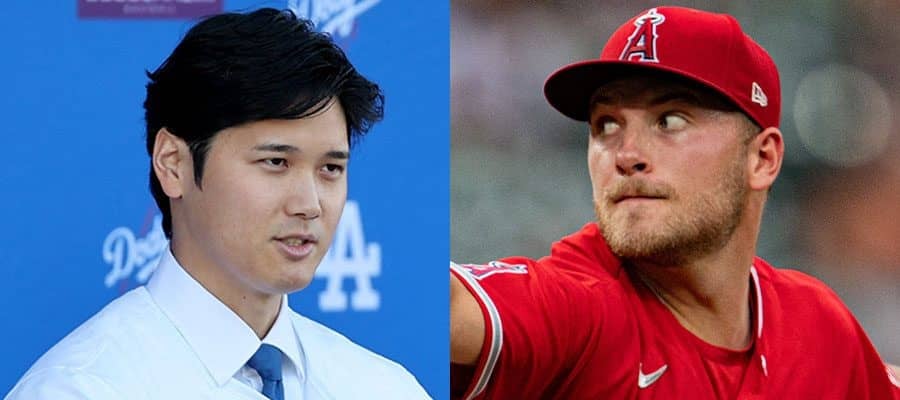 ドジャース・大谷翔平(左)とエンゼルスのリード・デトマーズ【写真:ロイター】