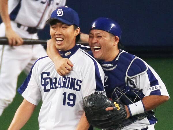 2011年に最優秀バッテリー賞を受賞した吉見一起氏(写真左)と谷繁元信氏