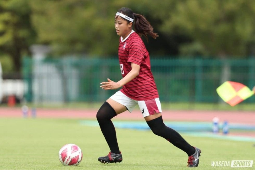 関カレ後期第5節、国際武道大戦に引き続きの途中出場になったMF栗田彩令(スポ3=静岡・藤枝順心)。積極的にボールを呼び込んだ