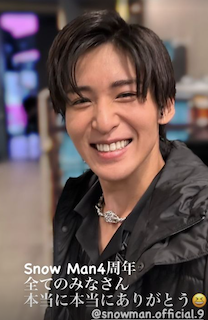 「Snow Man4周年全てのみなさん本当に本当にありがとう😆」と感謝を綴り、1枚の写真をアップ。Snow Manは1月22日、デビュー4周年を迎えた。