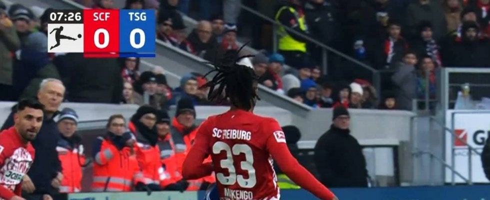 レッドカードでもなんら不思議はない危険なタックルだった。フライブルクのDFヨルディ・マケンゴがルーズボールに反応すると、ホッフェンハイムのDFパヴェル・カデジャーベクの足裏タックルが炸裂。足首を削られた22歳のDFは激しく悶絶した。