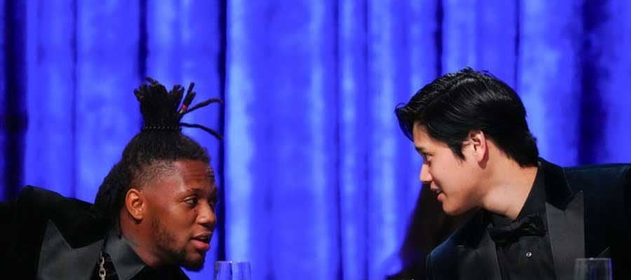 濃紺のタキシード姿の二刀流は他の選手の目にも新鮮に映ったのだろうか。27日(日本時間28日)に行われた全米野球記者協会(BBWAA)ニューヨーク支部主催の夕食会に参加したドジャース・大谷翔平投手と、ブレーブスのロナルド・アクーニャJr.外野手の2ショットが反響を呼んでいる。
