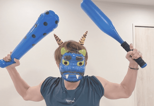 「数日ぶりに帰宅してパパが鬼になってリビングに来てもらいました👹」と綴り、複数枚の写真をアップ。