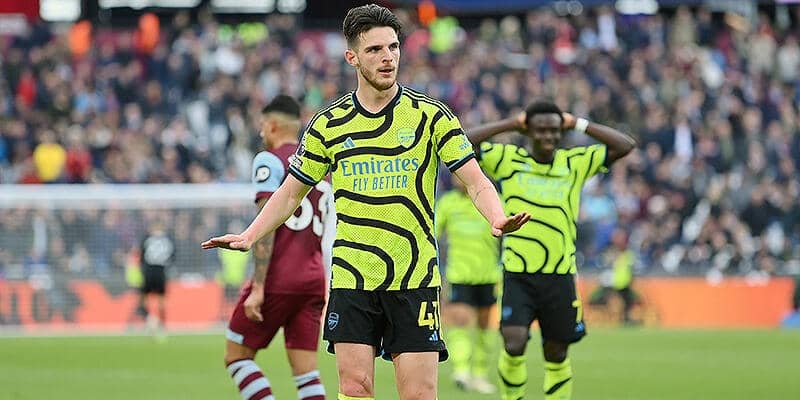 立ち上がりから球際で激しくぶつかり合うダービーらしい入りとなるが、徐々にウェストハムのプレスをいなし始めるアーセナルが押し込んでいく。流れのなかでは決定機には至らずも、得意のセットプレーから幾度か際どいシーンを作り出す。