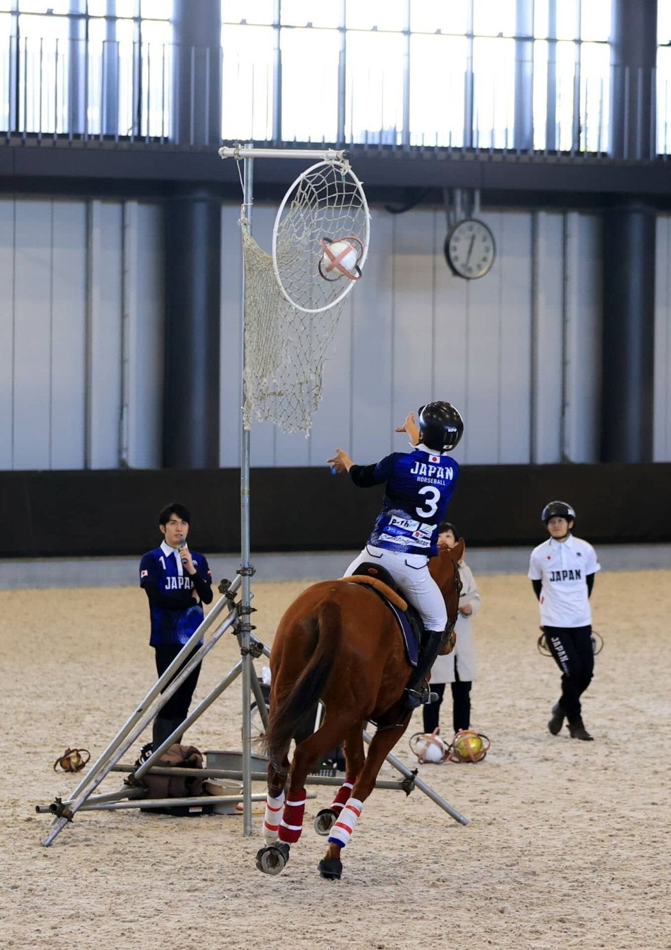 2月12日、「第6回ホースメッセTOKYO2024」がJRA馬事公苑で開催され、同イベント内で乗馬を行いながら球技を行う「ホースボール」の実演が行われた。