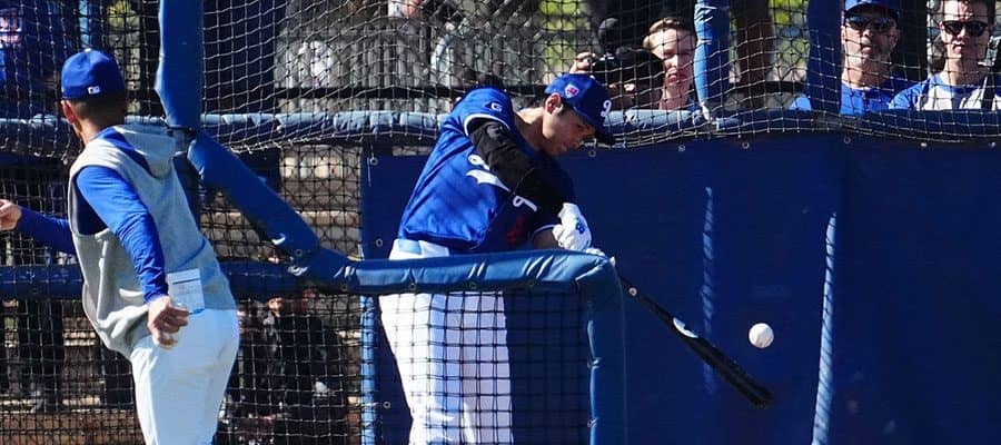 屋外打撃練習を行ったドジャース・大谷翔平【写真:荒川祐史】