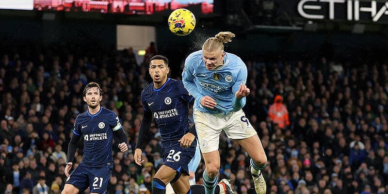 開始2分にハーランドの落としからアルバレスがファーストシュートを放ったホームチームは、左サイドのドクの個人技や右のローリングを使いながらサイドを起点に攻め手を窺う。12分には左でポケットを取ったアルバレスのクロスをゴール前で競り勝ったハーランドが頭で合わすが、これは枠の右に外れる。