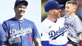 大谷(左)と息子との2ショットを公開したフリーマン(右)。その様子は大きな話題となっている。(C)Getty Image…