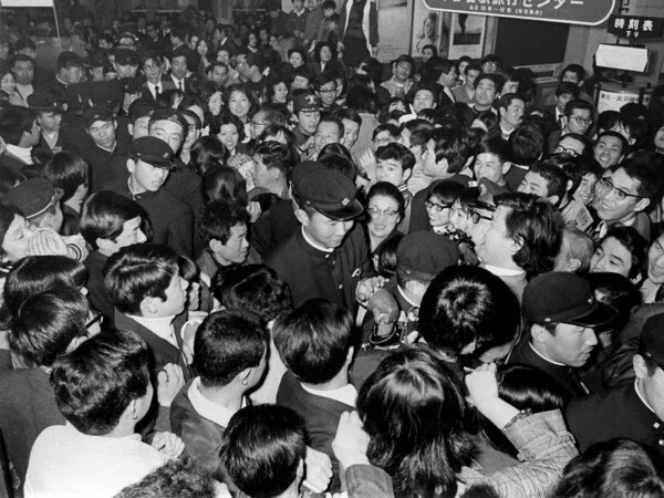 センバツが終わり、詰めかけたファンにもみくちゃにされる江川卓(写真中央) photo by Shimotsuke Shimbun/Kyodo News Images