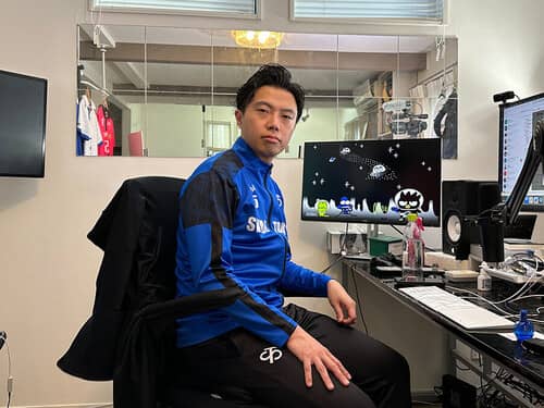 おなじみの配信席に座るレオザフットボール(本人提供写真)