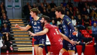 プレーオフ初戦で勝利に導く活躍を見せたミラノの石川祐希(右)【Photo:Lega Pallavolo Serie A】…