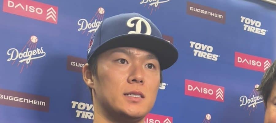 開幕2戦目の先発登板については、ロバーツ監督から告げられなかったという。「投手コーチと登板の日程を話していたんですけど。確かに監督からは伝えられてないですね」と話し、笑顔を見せた。この日のブルペンではセットポジション時にグラブの位置を低く構えてから投球。「構えは大事にしているので。いいポジションに。まず構える位置がズレると投球が崩れるので、そこは大事にしています」と語った。