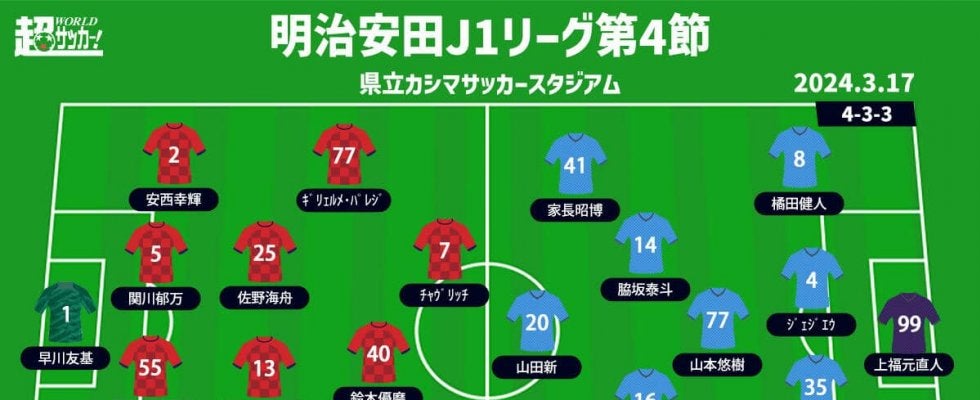 【明治安田J1リーグ第4節】 2024年3月17日(日) 15:00キックオフ 鹿島アントラーズ(10位/4pt) vs…
