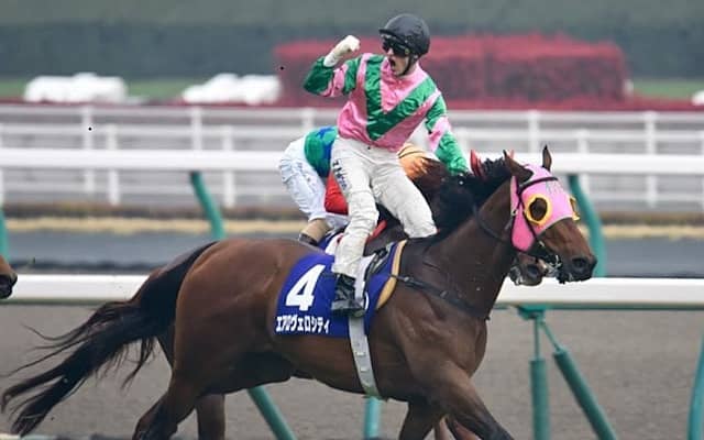 ガッツポーズするZ.パートン騎手とエアロヴェロシティ(ユーザー提供:モスをさん)
