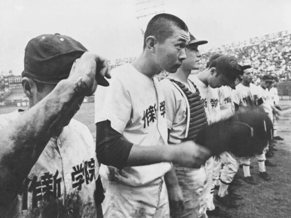 銚子商に敗れ、応援席にあいさつをする江川卓(写真左から二人目) photo by Kyodo News