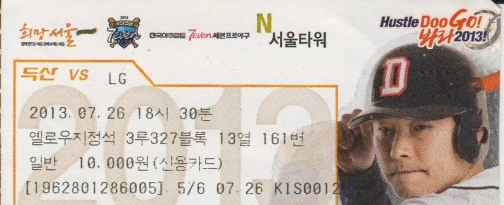 韓国プロ野球 斗山ベアーズ対LGツインズの入場券 提供/後藤健生