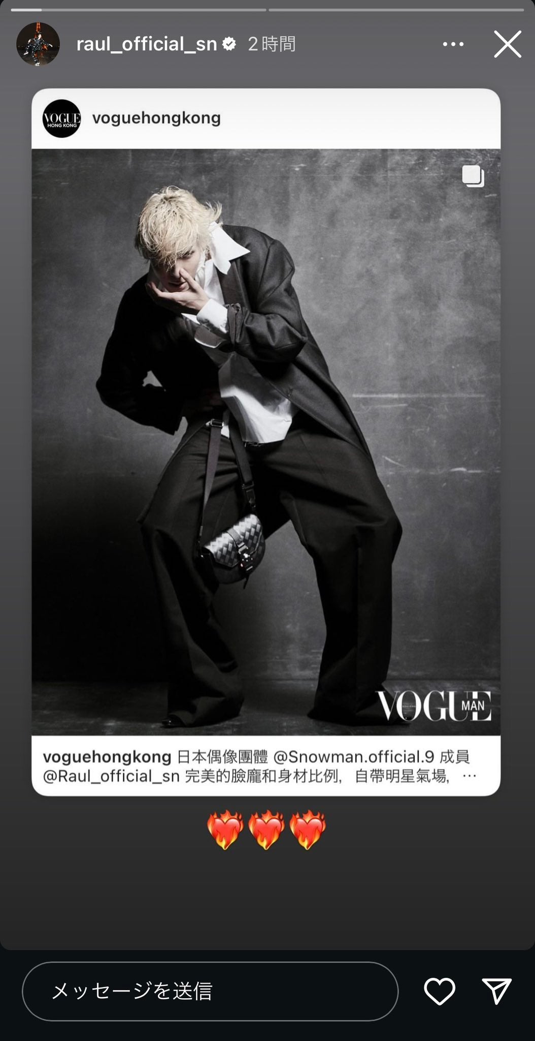 Snow Manの佐久間大介が22日、自身のSNSを更新した。「おい!このラウールかっこよすぎんだろ!! りんご食べてる…
