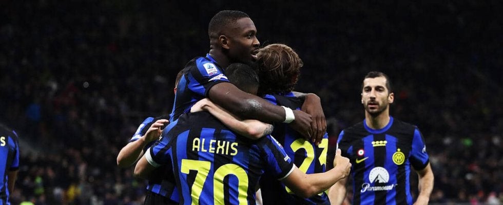 インテルは自陣からビルドアップをスタート。GKエミール・アウデーロへのバックパスからはじまると、カルロス・アウグスト、マッテオ・ダルミアン、アレクシス・サンチェス、ヘンリク・ムヒタリアン、ニコロ・バレッラ、デンゼル・ダンフリースとテンポ良く繋いで左から右サイドへと展開し、最後はクロスをサンチェスが合わせてゴールを奪った。