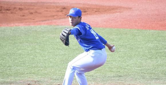 3月23、24日に石巻市民球場で開催された東北地区社会人・大学野球対抗戦。七十七銀行の渋谷が母校・石巻専修大戦に先発登板した。