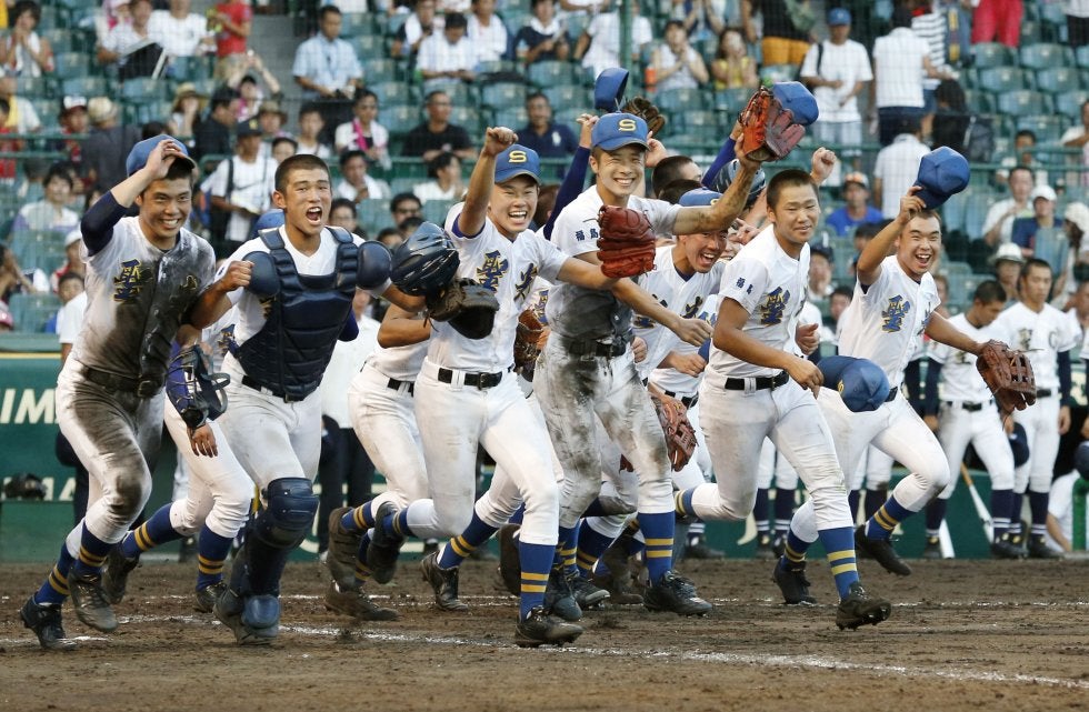 聖光学院-聖心ウルスラ 3回戦進出を決め、駆けだす聖光学院ナイン=甲子園【写真提供=共同通信社】 第99回全国高校野…