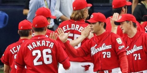 阪神に勝利し4連勝、ナインとタッチを交わす広島・緒方監督(79)=京セラドーム【写真提供:共同通信社】首位・広島東洋が5…