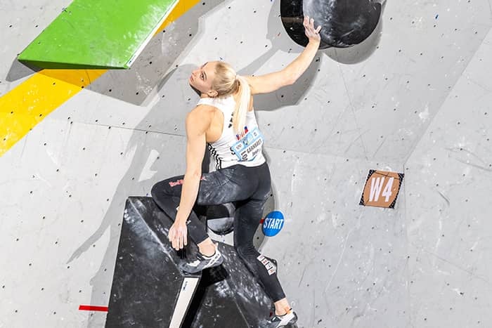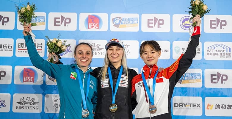 中国・柯橋で開催中の2024年クライミングW杯シリーズ初戦となるボルダー第1戦で9日、女子決勝が行われ、4課題すべてを…