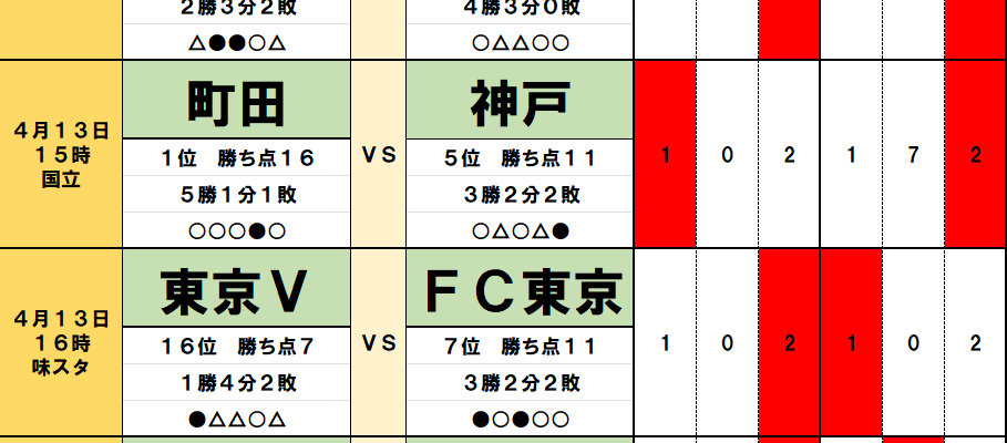 今回のtotoは、J1第8節の9試合とJ2第10節の4試合が対象となっている。過去のデータや直近の様子などから、分析を進めてみよう。