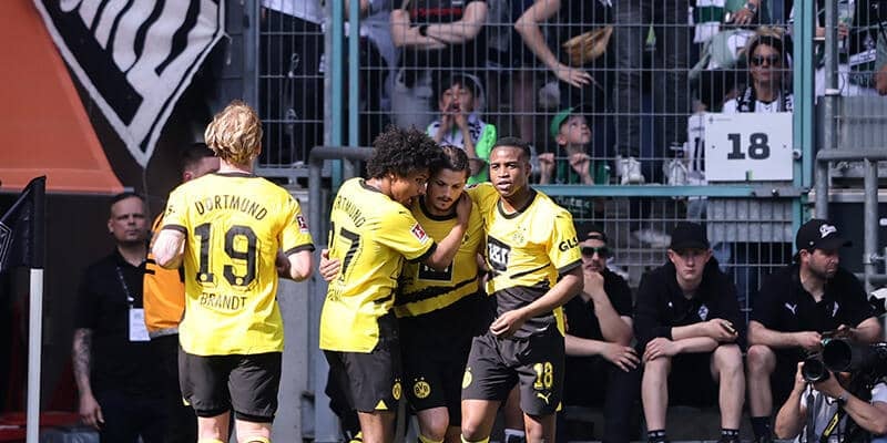 すると55分、アデイェミが2枚目のイエローカードを受けて退場に。10人となったドルトムントだったが、自陣に引いてボルシアMGをいなし時間を消化していく。