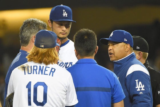 7回にマウンドに上がった後にトレーナーらと話して降板「念のため予防策」 ドジャースのダルビッシュ有投手は16日(日本時間…