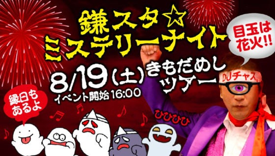 昨年は5000人の来場者を集めた。今年も夏の風物詩である人気イベント「肝試し」を担当することになった謎のキャラキター「DJチャス。」は「週間天気予報チェック隊長の自分として気分は微妙だけど、まあ、ひと夏の思い出に鎌スタでは肝試しでキャーキャー、花火大会でロマンチックな気分に浸りながらあなただけの青春の1ページを飾って欲しい」と来場を呼びかけた。