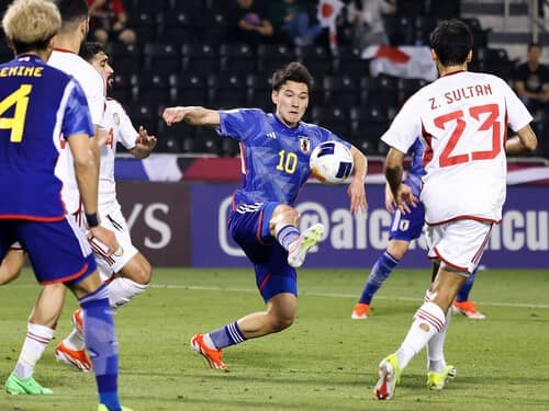 パリ五輪アジア最終予選を兼ねた、U23アジアカップ。日本はグループリーグ第2戦で、UAEに2-0と勝利した。前半27分にDF木村誠二が、後半21分にMF川﨑颯太が、ともにクロスからヘディングシュートを決めての2得点である。