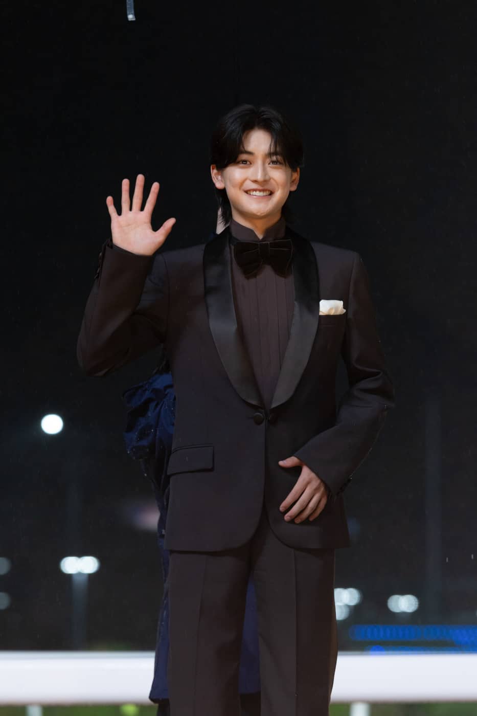 スラッとしたスタイルが映えるブラウン系のタキシードとブラウンの蝶ネクタイ姿で登場した高橋。羽田盃の表彰式前インタビューでは、「こんばんは!高橋文哉です!イメージキャラクター就任が決まってから4月24日が待ち遠しかったので、今回生観戦をしてドキドキしています」と興奮気味に話した。