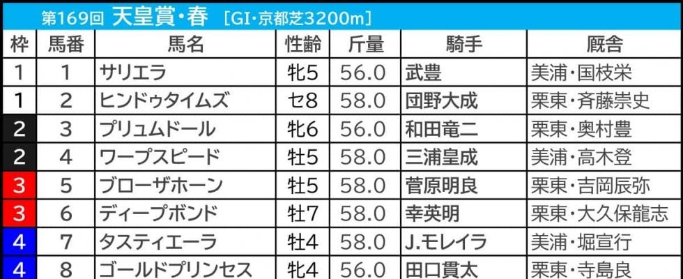 【天皇賞春/枠順】サリエラ騎乗の武豊は内枠なら「6.2.0.1」連対率88%の“鉄板級” | その他競技