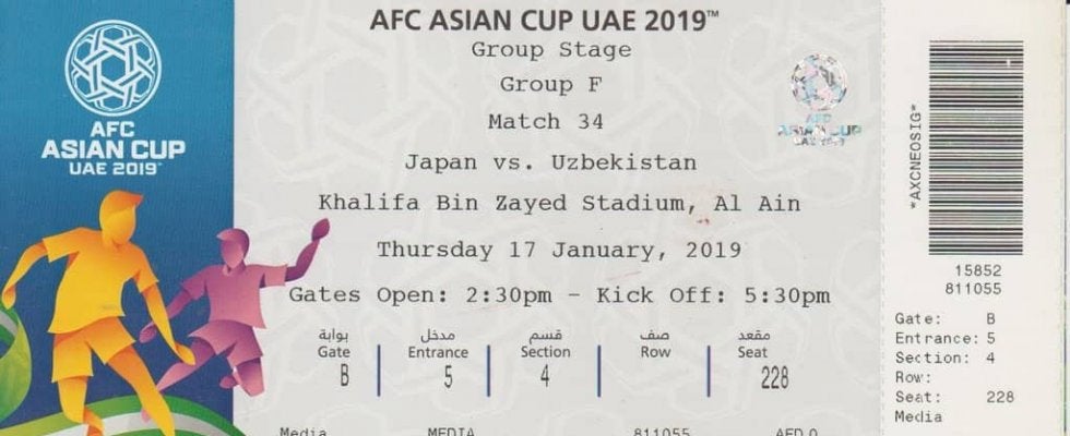 2019年アジアカップ。日本対ウズベキスタン戦の入場券。提供/後藤健生